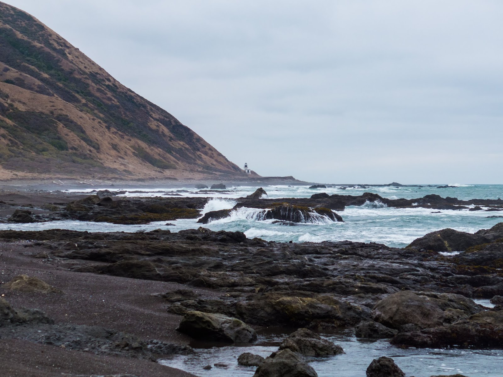 The last section on Black Sands Beach toward Horse Mountain Creek. Shelter Cove, the end of my hike, is the point on the right of the photo.